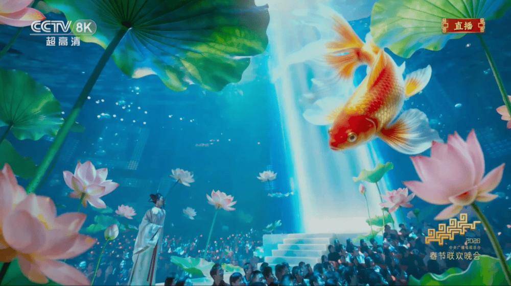 歌咏创意秀《贺花神》在蜀葵花和金鱼的视觉制作中,Seedance 2.0为每位演员定制了“一月一人一景,一花一态一观”的视觉奇观,核心挑战在于极致的细节把控——花朵绽放速度、纹理清晰度、光影层次均需精准控制,任何微小的抖动或失真,都会在春晚的高清大屏上被无限放大。