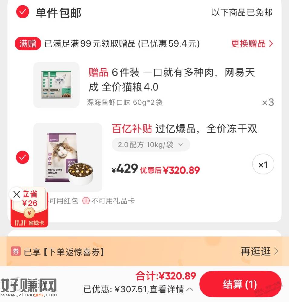 网页严选冻干双拼猫粮10kg,240元,再送小零食猫粮6袋