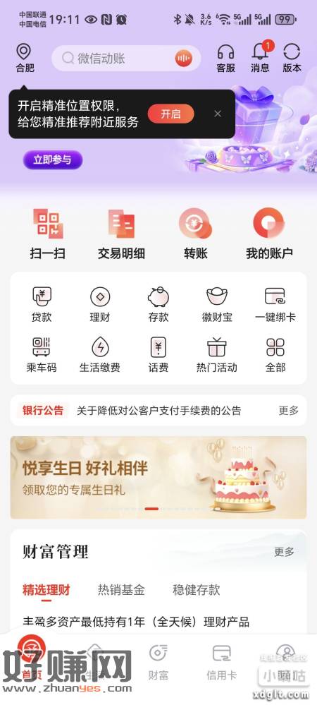 徽商银行APP11月生日的APP横幅生日礼我是1.99微信立减金