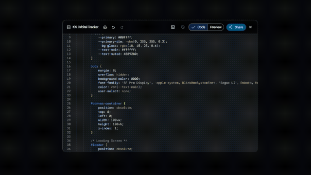Google 官方展示了一个 demo,让模型直接接入公开遥测数据流,搭出了一个实时追踪国际空间站轨道的酷炫网页。