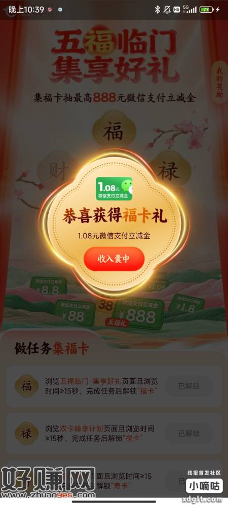 华夏银行横幅首页点进去第二个活动 3个浏览任务做一下抽立减金 非必中