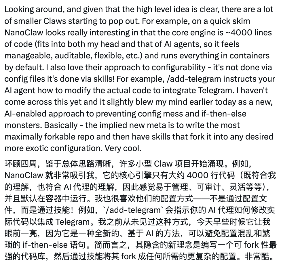 NanoClaw、ZeroClaw、PicoClaw刷屏,连卡帕西都坐不住了,为了“抓虾”,他一个百米冲刺奔向苹果店抢Mac Mini,要好好拆解一番爆火的各种Claw们。
