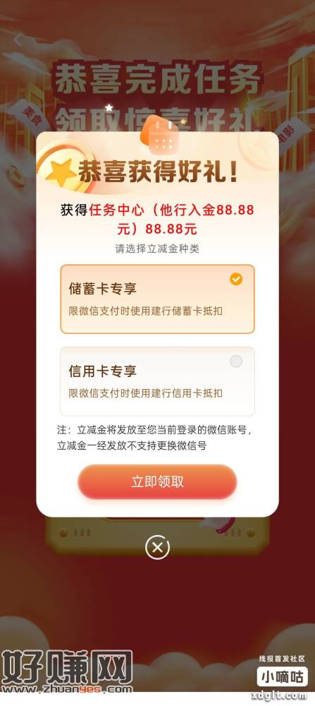 重庆建行活动 找到①任务中心-②做任务享好礼-③他行入金享好礼就是用其他银行卡转大于10在建行卡里面抽奖刚中88.88