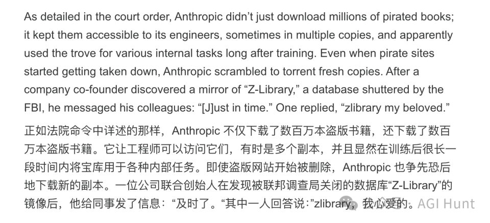 Anthropic 训练数据里有 700 多万本盗版书,你们自己付过版权费吗?现在跑出来说别人侵犯知识产权?