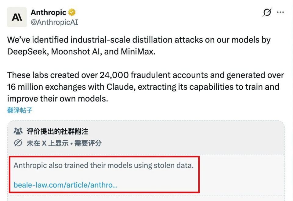 所以当 Anthropic 跳出来说「别人偷了我的模型能力」时,很多人的第一反应是:你们不也是这么过来的吗?