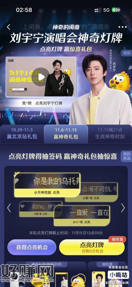 【闲鱼】https://pages.goofish.com/sharex ... hort_name=h.SpjnT7E HU071 「快来和我一起点亮刘宇宁演唱会神奇灯牌,赢礼包」