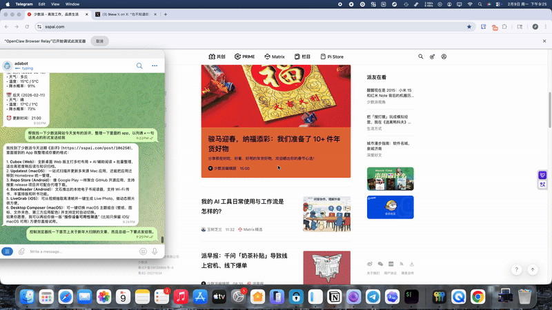 OpenClaw 的出现,可以说重新整合了我的写作工作流。虽然我已经从去年开始就尝试使用 AI 来帮助我进行资料搜集、事实核对、内容校对润色等工作,但是因为平台切换、模型变更、功能更新等原因让整个流程变得支离破碎。
