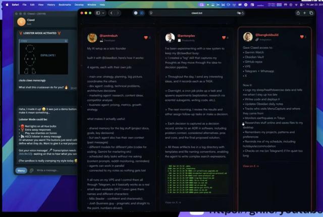OpenClaw 的开发者 Peter Steinberger 在一个访谈中也聊了聊他本人的用法,包括了调整床垫温度、播放音乐、调整灯光、查看摄像头画面、查询快递进度等。具体的玩法可以参考视频中的访谈详情,视频来自于傅盛的 X 贴文。