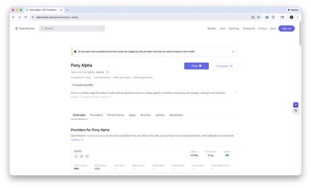 如果你只是想简单体验一下 OpenClaw,并不想额外花钱订阅 AI 套餐或者购买 Credits,那你也有不少免费的模型可以选择。比如说英伟达就推出了 Kimi K2.5 的试用活动,可以通过这个链接申请 API Key 并直接在 OpenClaw 中使用。OpenRouter 近期也推出了一个名叫 Pony Alpha 的模型,可以在 OpenClaw 中免费使用,不过代价是作为免费测试模型它会上传所有的请求和输出数据,用来训练模型。