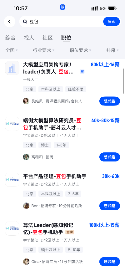 多家登上春晚的企业在脉脉高薪招人,岗位类型覆盖研发、产品、运营等方向,多个岗位年薪超100万元。宇树科技持续招聘研发人才,字节跳动为“大模型应用架构专家”开出128万元年薪,“平台产品经理”月薪最高达6万元。松延动力、银河通用的“电机控制算法工程师”“多模态导航算法工程师”等岗位年薪均超100万元。