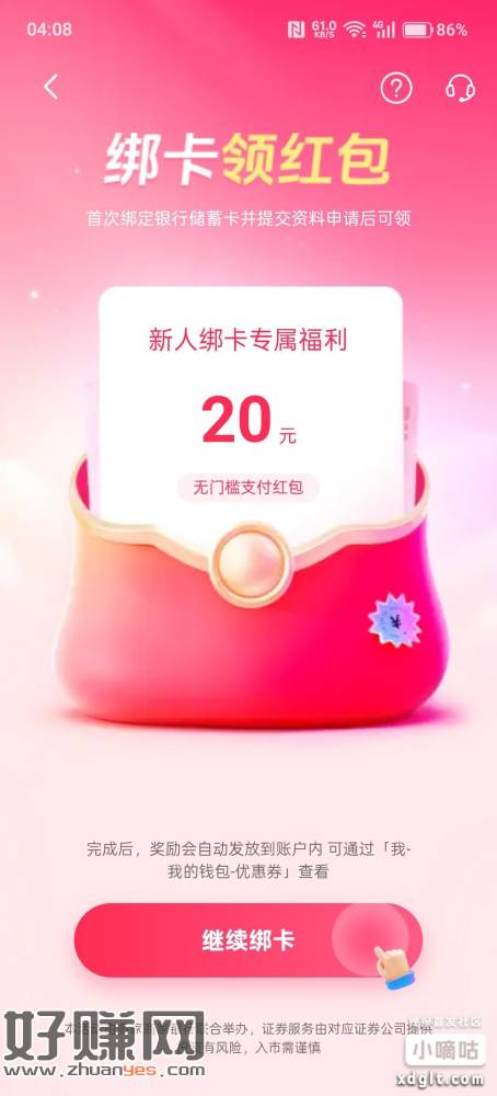 dou音进去钱包零钱,绑定银行卡开通证券,只要提交资料就给20无门槛支付券