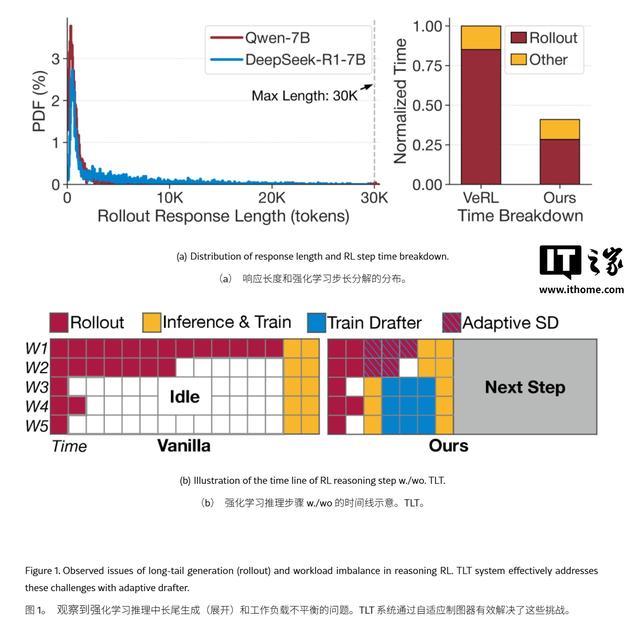 研究团队发现,生成多个备选答案的“推演”(rollout)阶段占据了高达 85% 的训练时间。由于不同处理器生成回答的长度不一,完成较快的处理器只能被迫闲置,等待其他处理器完成长文本任务,从而形成了严重的效率瓶颈。
