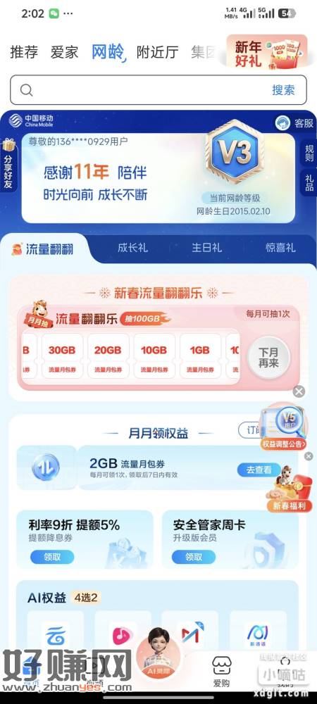 福建移动可以改这个十元套餐比八元套餐多了50分钟通话 日常使用够用了每月网龄里面记得抽和领取2G通用流量