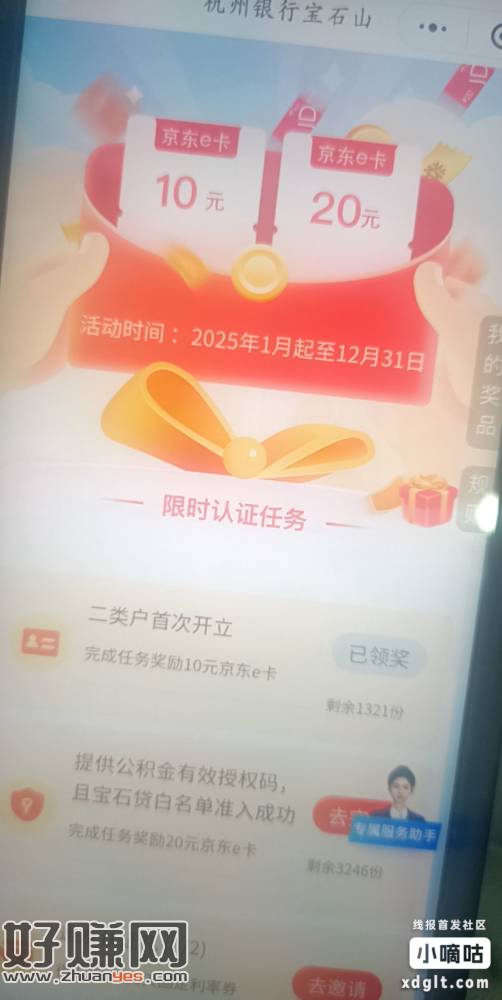 杭州银行宝石山小程序下面有个限时认证开户得10e卡,没开过的去