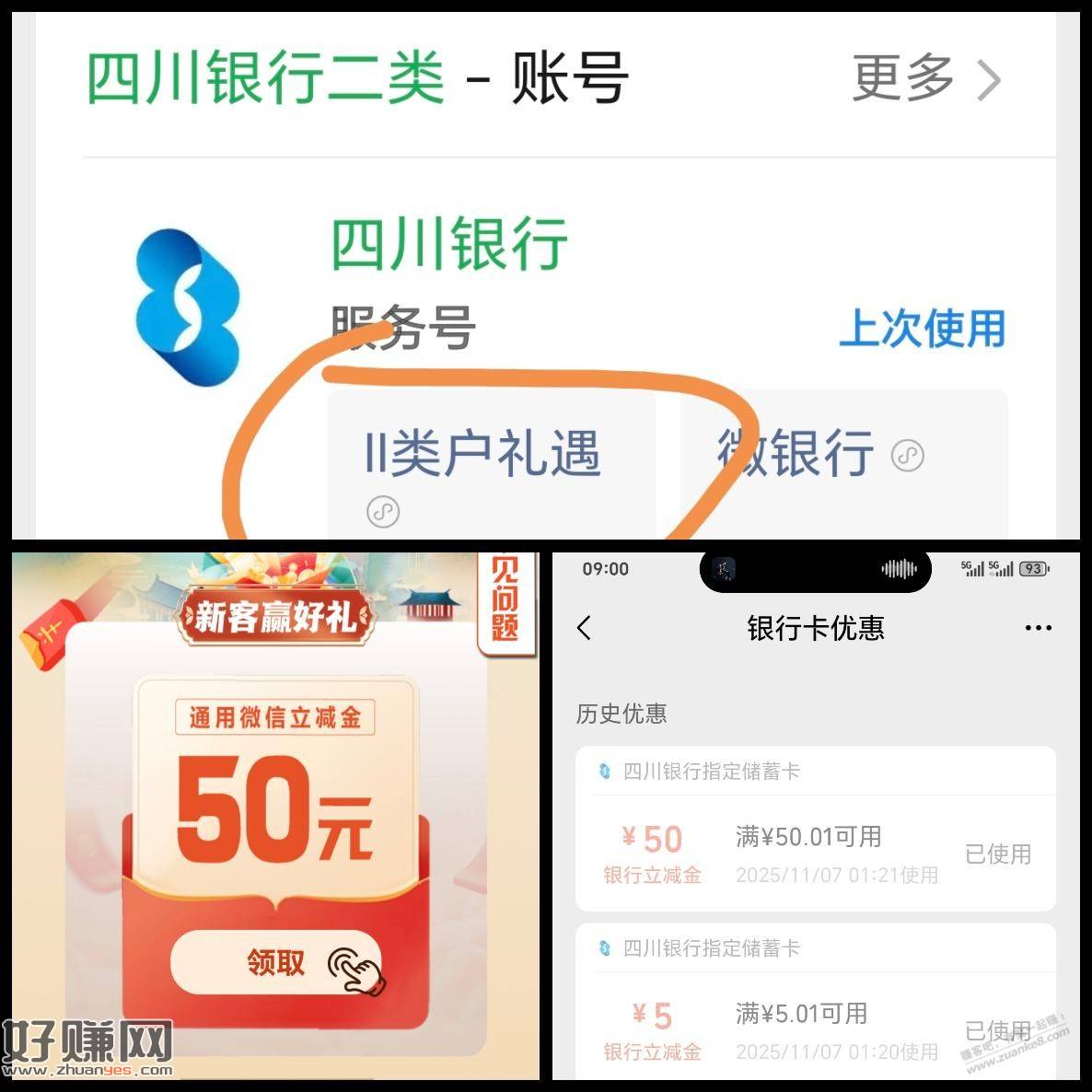 偶然看到这个活动,开成功了,给大家分享下,有兴趣和动手能力强的可以试试。需要虚拟定位和挂四川IPwx搜索"四川银行二类",如图链接点进去,填完信息到最后一步,如果没不是四川IP,提交会提示不符合。换了四川ip才成功。我用的i加速或其他类似软件都行开完后50会立即到账,还有个5活动页面手动领取。仅分享经验,不喜勿喷谢谢