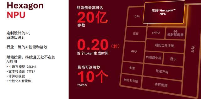 高通称,骁龙可穿戴平台至尊版集成的 eNPU、高通 Hexagon NPU 以及传感器中枢共同工作,使这些贴身与近身的 AI 终端能够更深入地理解用户的日常生活情境,从而随时“见你所见、听你所听”。具体来说,其终端侧最高可达 20 亿参数,首个 token 生成时间缩减到 0.2 秒,最高可达每秒 10 个 token。