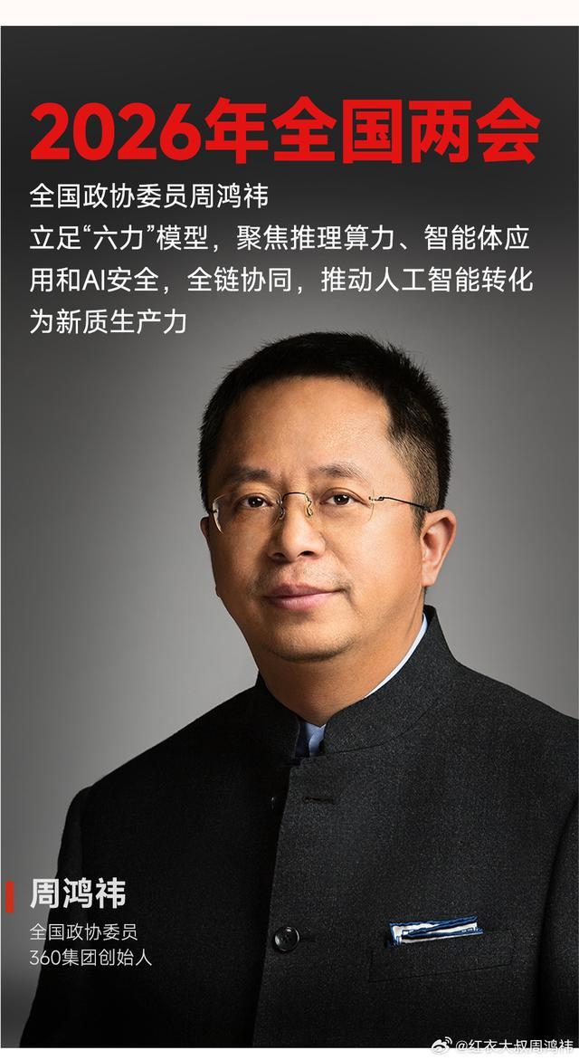 IT之家注意到,2026 年全国两会,作为全国政协委员的周鸿祎拟围绕推理算力、智能体技术与人才发展、智能安全三方面提交提案。