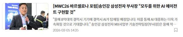 【CNMO科技消息】近日,MWC26巴塞罗那论坛在西班牙巴塞罗那开幕。三星电子MX事业部技术战略团队长、副社长沈元根出席并发表主题演讲,阐述了三星在人工智能领域的最新战略布局。