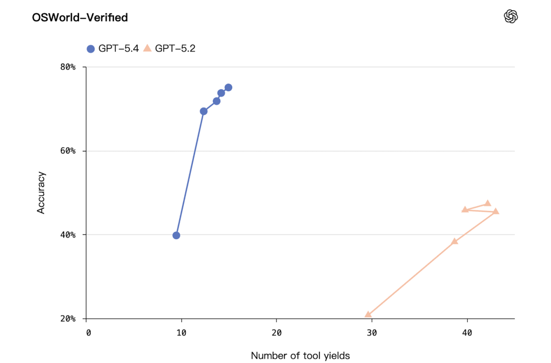 两套系统各管各的,信息要来回传递,效率自然打折。现在这道分隔没了,GPT-5.4 操控电脑时,用的就是模型本身的推理能力,不需要再绕一圈。