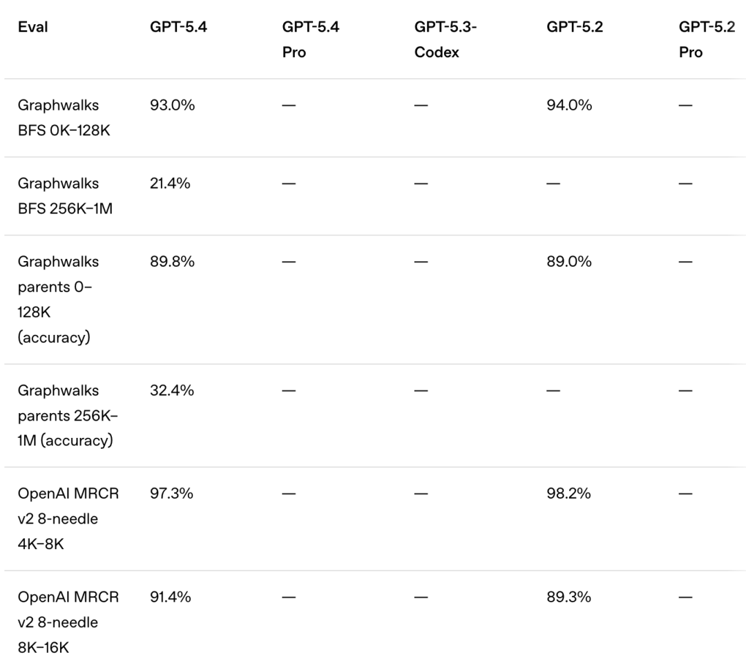 GPT-5.4 在 API 中支持最高 100 万 Token 的上下文窗口,相当于可以把一个完整项目的所有相关文档一次性塞进同一次对话。