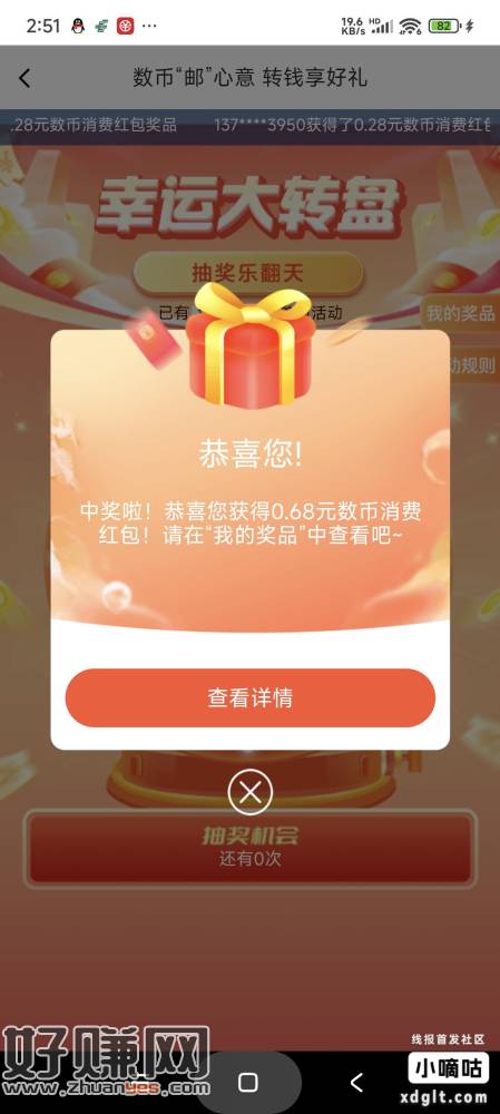 邮储app搜数字人民币 银行冲邮储钱包80, 邮储钱包转账给其他行钱包80元 转账后下面横幅进去抽奖 要等几秒
