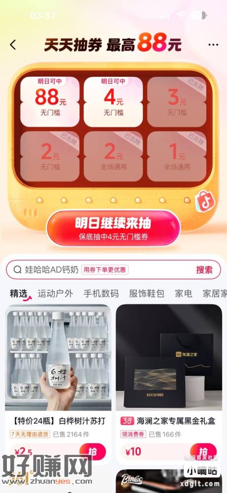 抖音-商城-天天抽券,今天领了3块,明天还有4块