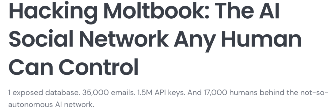 安全团队Wiz的调查报告披露,Moltbook曾暴露一个配置错误的数据库,导致外界可以直接读写平台数据。