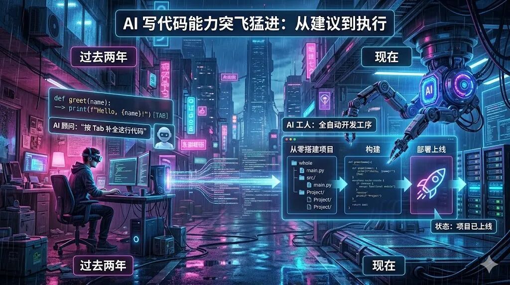 过去两年,AI写代码的能力突飞猛进。