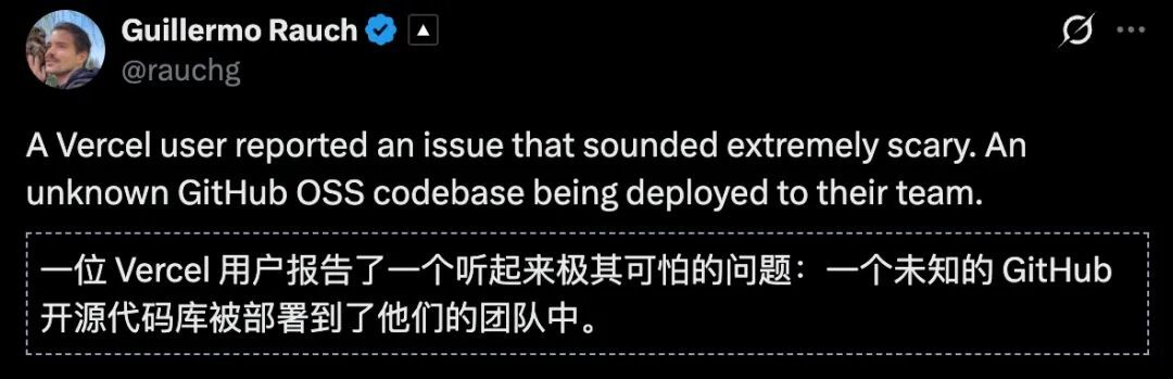 Vercel的CEO Guillermo Rauch亲自在社交媒体上披露了这起事件的细节,读完之后,整个就是感到一个「惊悚」。