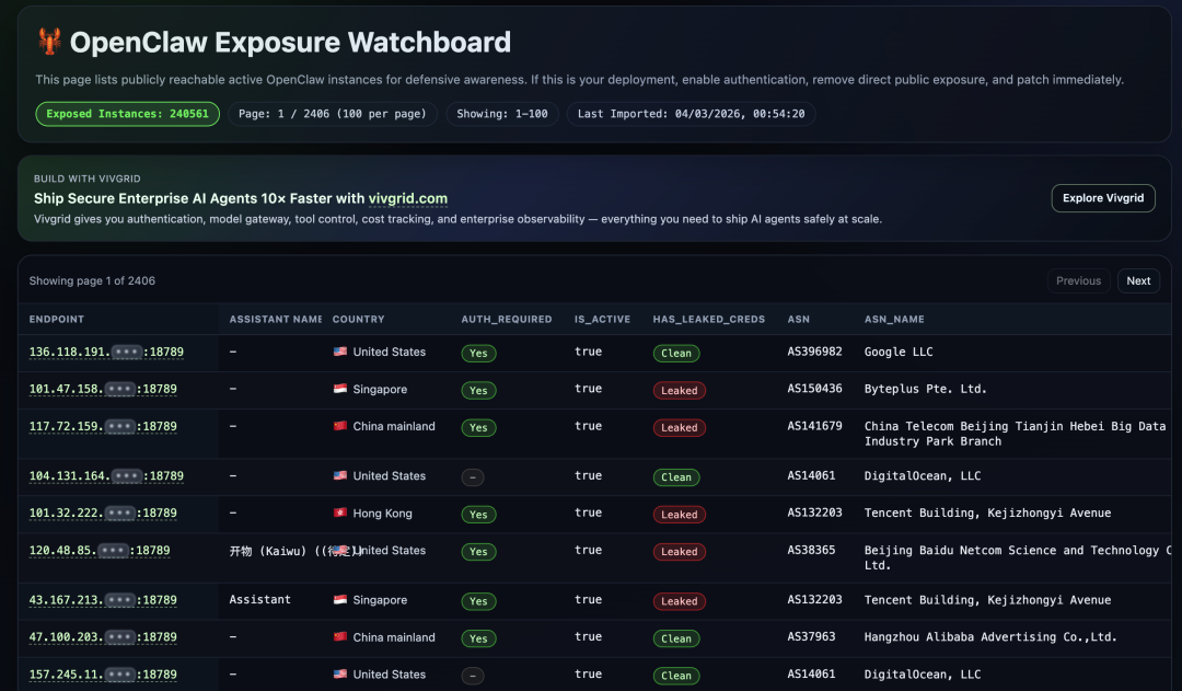 有人总结了目前能够被监控到的所有被暴露在公网的OpenClaw智能体。
