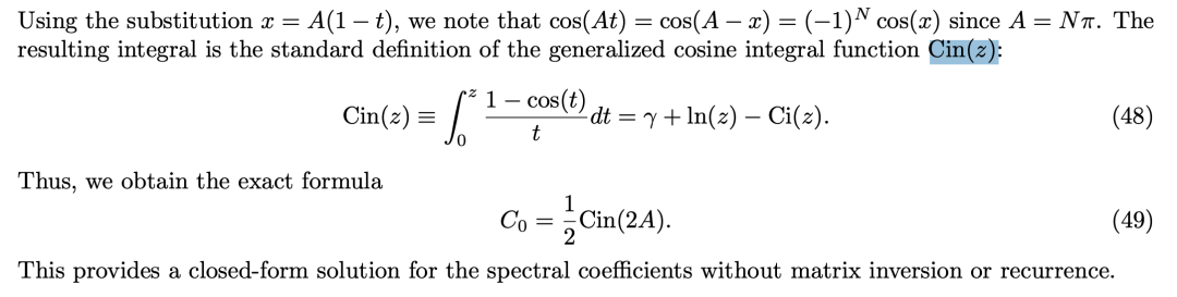 最终,结果可以用余弦积分函数Cin(z)精确表达——一个封闭的解析表达式,无需数值近似,适用于任意环几何结构下的任意N。