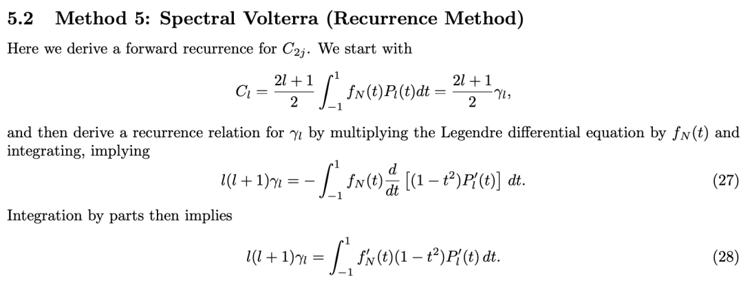 方法5:谱沃尔泰拉递推法(Spectral Volterra Recurrence Method),推导出系数的前向递推关系。