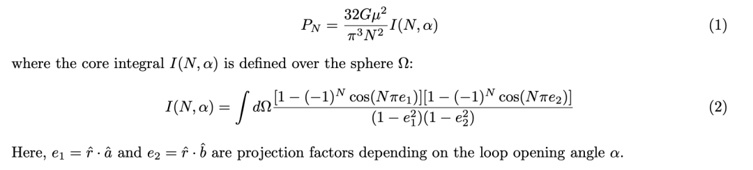 具体来说,有一个核心积分 I(N, α)——描述宇宙弦环第N谐波发出的辐射强度。