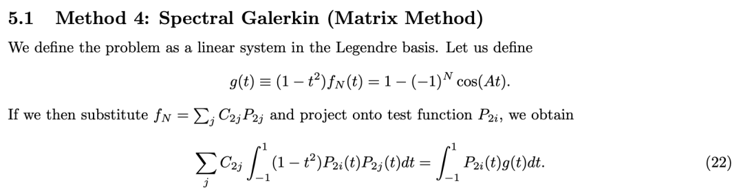 方法4:谱Galerkin矩阵法,把问题转化为一个三对角线性方程组来求解。
