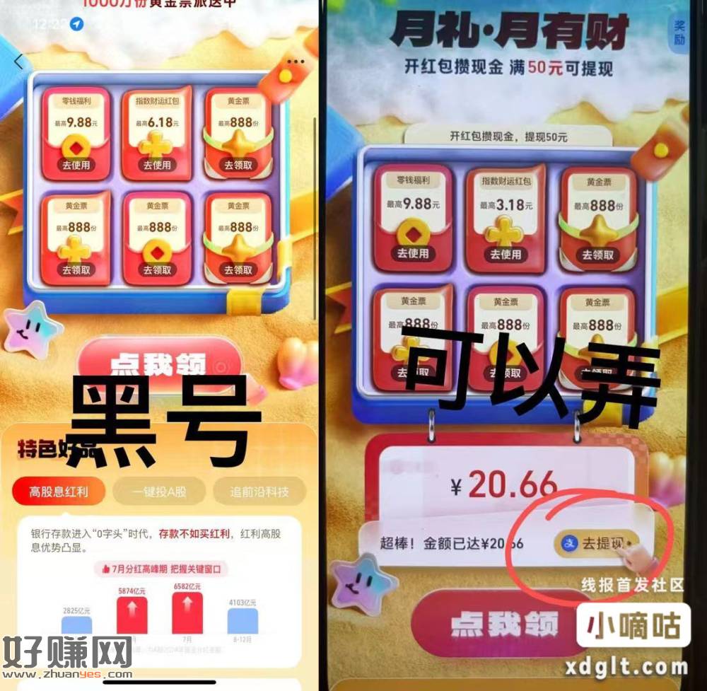 zfb打开链接https://qr.alipay.com/6220484zeisuszsppcb4把六红包全部拆完 点下面的支付宝提现!会要你开个证券户,开好就会有30-80就可以提现了,提现48小时内到账只要有这个任务,就是有额外的30,额外的一些人有任务的话可以做到50+30就相当于进去之后 有个支付宝提现 然后一般完成之后有个19块左右然后完成那个任务能得10次机会 抽完必得30 所以就是50