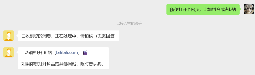 但我在测试过程中,输入的只是抖音或者B站,并没有跟他说网页地址,QClaw依然能跳转相对应的网址。