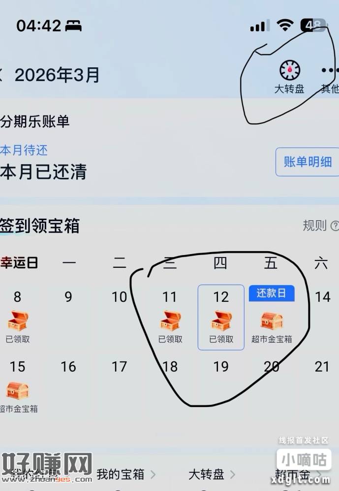 之前有兄弟发的分期乐,弄了不少东西然后现在每个月有特点时间可以开宝箱,开完宝箱抽大转盘,全凭运气抽买吖超市金。可以攒着,不知道这个超市金啥时候过期。