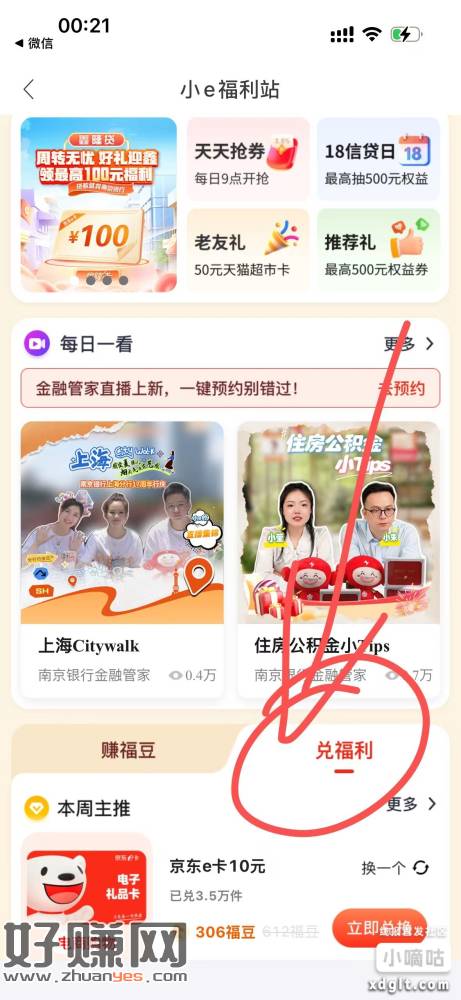 南京銀絎活动中心-小e福利站306豆子兑换10e咔,每天限量50件,豆子不够的可以每天签到领取