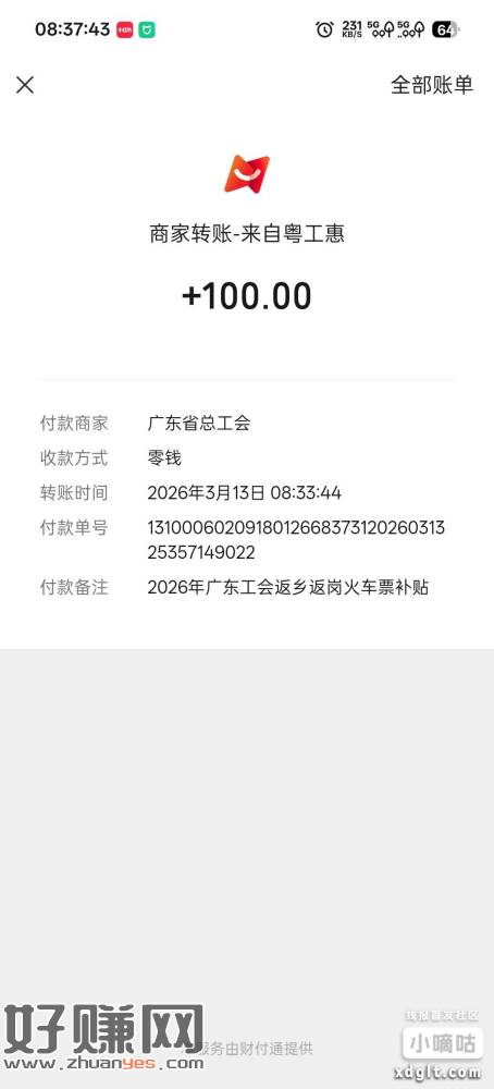 粤工惠100元居然到账了,说9号发,等了一天没发,没抱希望了,今天发来通知,说到账了,哈哈。直接到零钱,是转账的,哈哈。感谢广东总工会。