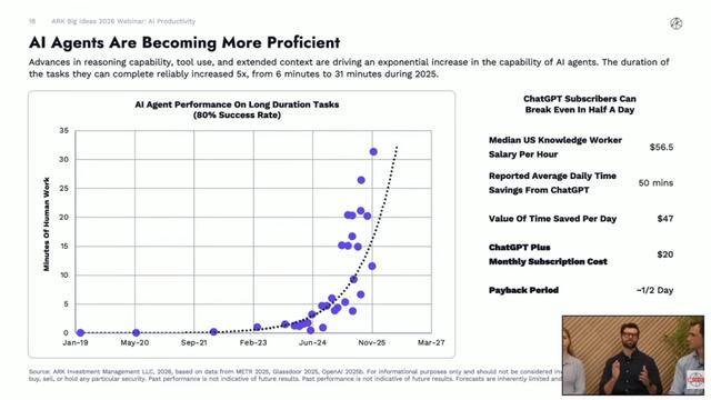 主持人:非常精彩。接下来能否向我们简要介绍一下目前对AI发展趋势的整体看法?在营收创造方面,AI在哪些领域创造了真正的净新增营收,而不仅仅是通过提高效率来压缩利润空间?ARK又是如何从炒作中辨别出真正有价值的信号的?