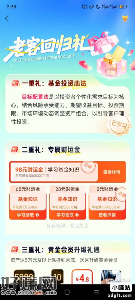 基金财富体验、陆基金、老友回归礼,可以套利哦!