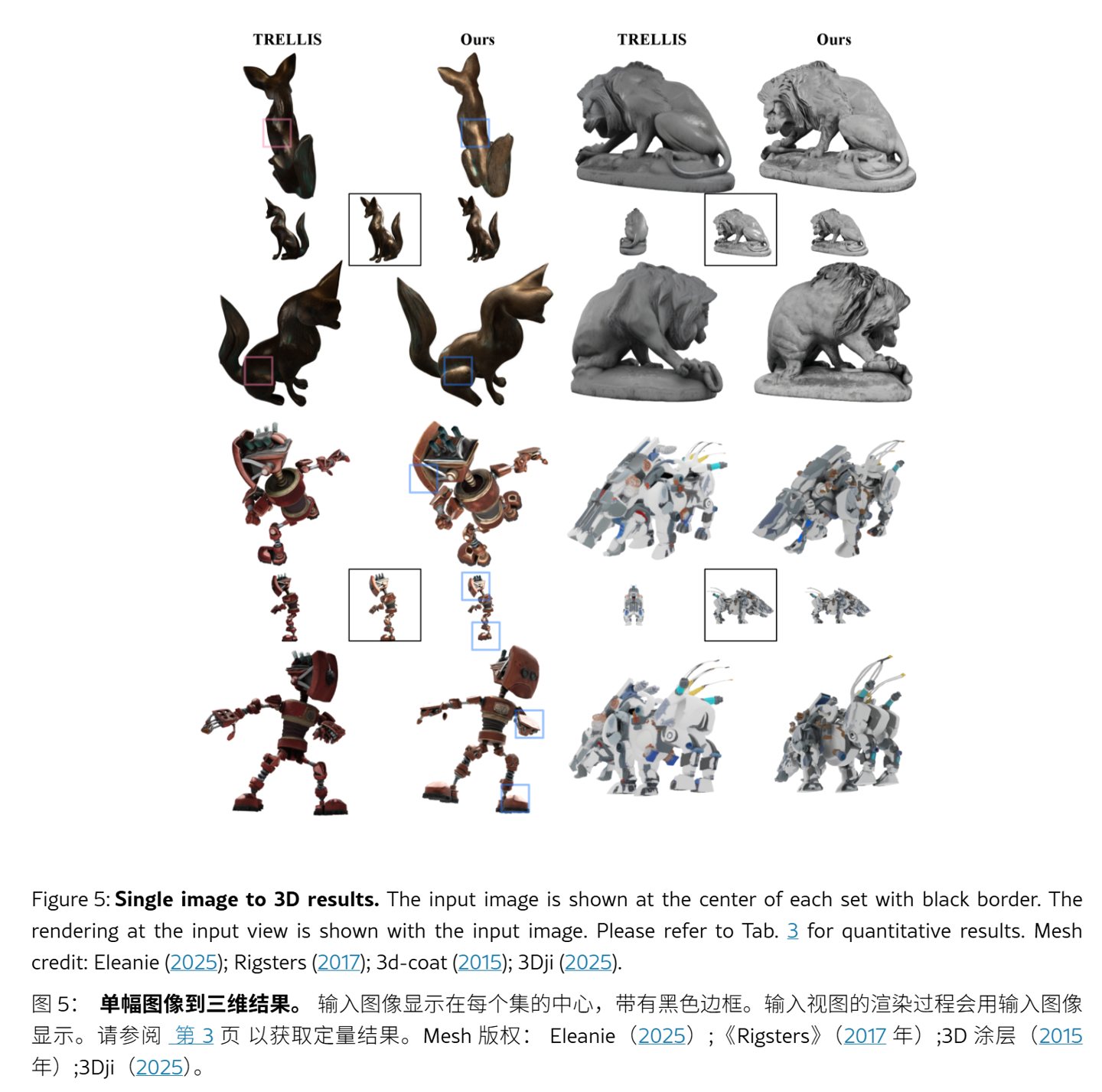 最终,模型具备了仅凭单张图片就能预测其三维潜在表示的能力。在苹果公布的官方对比测试中,LiTo 在多视角光影还原度上显著超越了现有的 TRELLIS 模型。