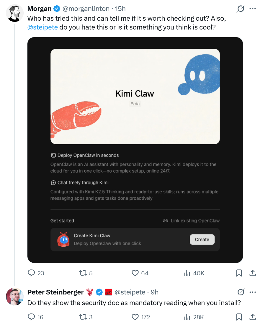 斯坦伯格对KimiClaw的质疑在社区中产生了实际影响。
