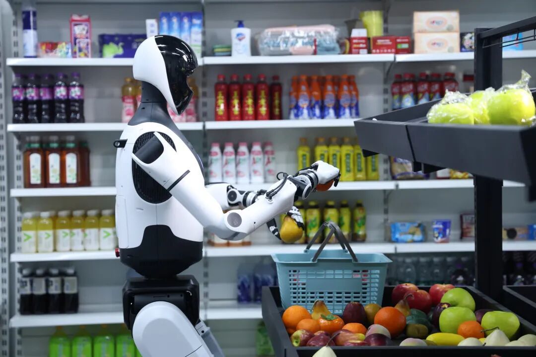 一辆没有方向盘的无人驾驶车,和通勤白领的共享单车一起滑过路口;斑马线旁,手握冰美式的年轻程序员,正戴着耳机沟通人形机器人的步态算法和关节模组扭矩;而在不远处的酒店旋转门里,一台刚送完外卖的机器人丝滑地避开客人,发出礼貌的电子音。