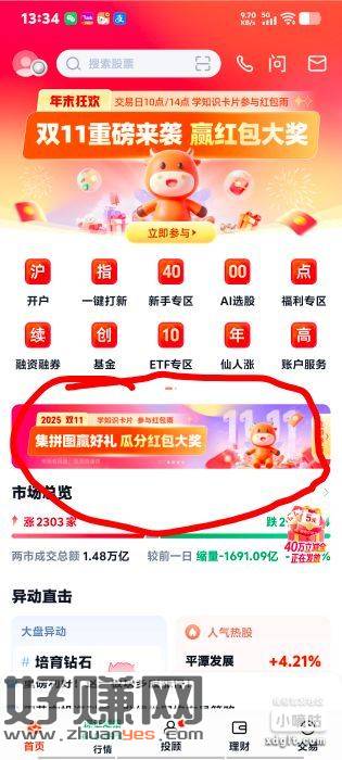 中信建投证券(蜻蜓点金)APP有账号的去,首页中间广告,应该都有8元以上,来回点就行
