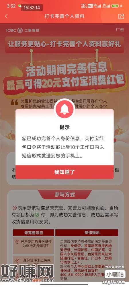 工银瑞信基金app更新信息得zfb红包,最低5最高20