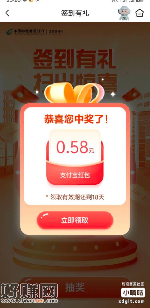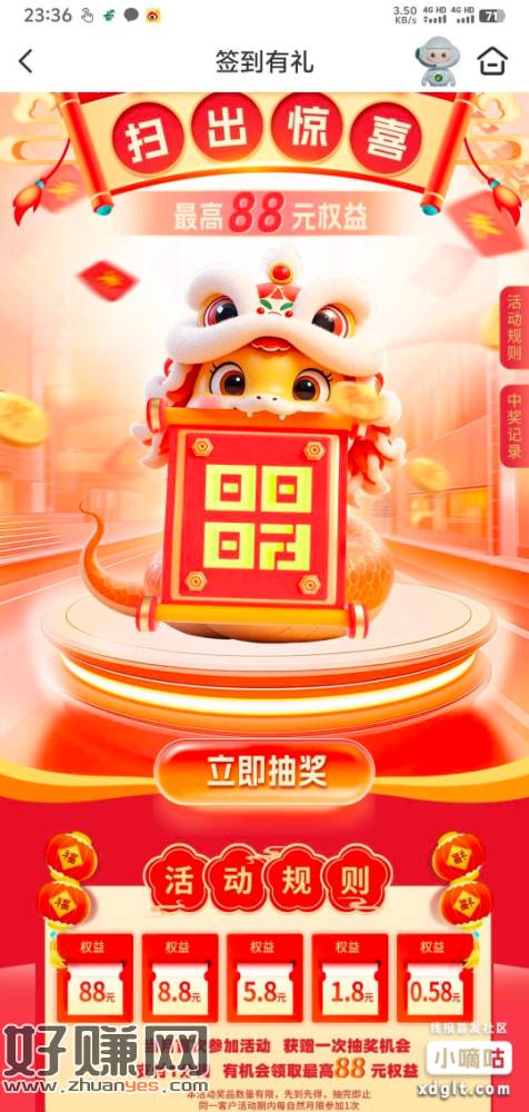 徐州邮储,生活本地服务 最高享88这个抽奖,可以去试试,我中最低0.58