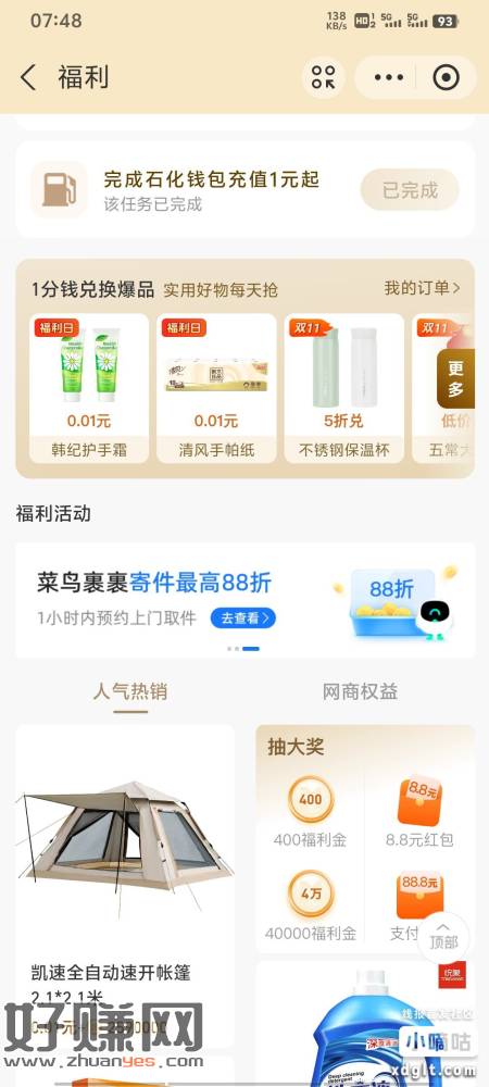 zfb-网商银行-我的-福利金 做充值油卡钱包任务 充值1元得7000福利金 相当于花1元拿6元
