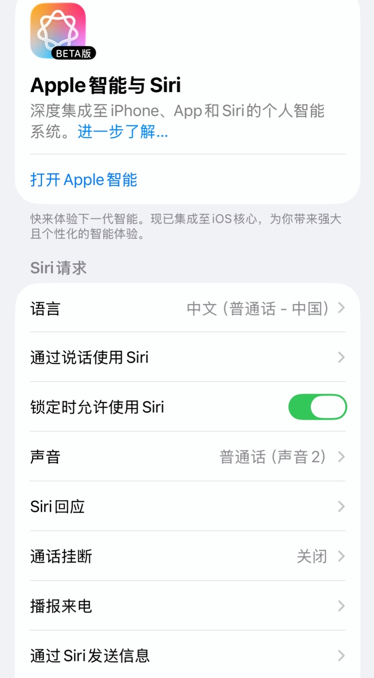 此外,根据意外上线的功能来看,用户升级后,设置中原有的“Siri”将变为“Apple智能与Siri”,并需下载约9.5GB的智能模型。