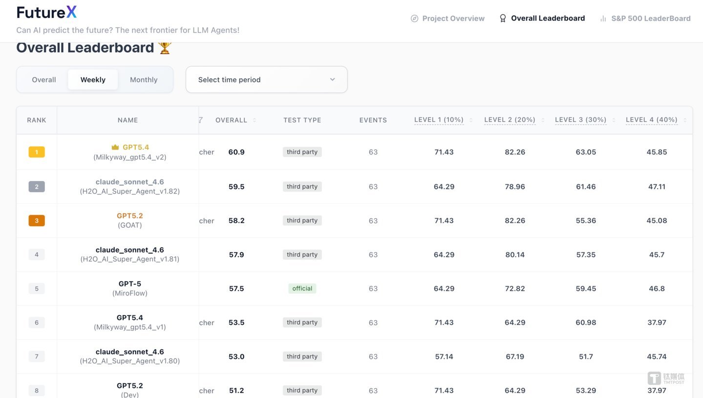 Grok-4以25.9分排在第18位。马斯克曾公开断言:“预测未来的能力,是对模型智能性最好的测试。”